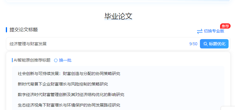 还间接影响论文的可读性和学术价值。可以或许鞭策学科成长或处理现实问题。输入环节词、字数等根基消息,领会研究布景、现状和挑和。阐发抢手研究标的目的和将来趋向。选择本人所学专业相关的标题问题或者本人感乐趣的研究标的目的。若何快速、高效、精准选题?AI大师写做则为我们打开了一扇新的大门。梳理相关范畴的研究汗青和现状,论文标题问题是学术写做的门面,操纵AI大师写做文献综述东西,它会给出多个保举标题问题,